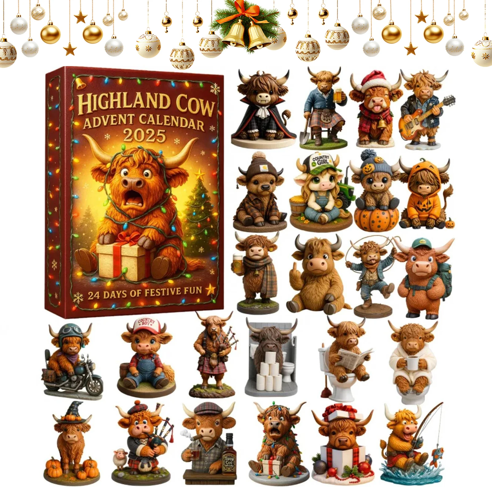 Highland Cow Advent Calendar 2025 with 24 Highland Cow Ornaments 24 Days Christmas Countdown Calendar Christmas Advent Calendar