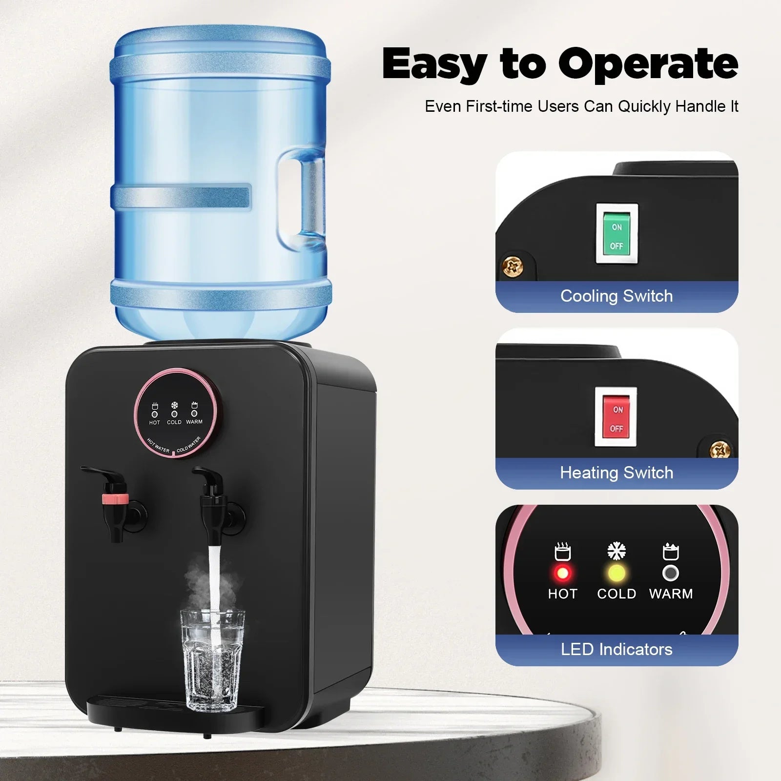 - Large capacity and top-loading design accommodate up to 4.99-gallon bottles with a 0.13 gal tank, so you can easily check remaining water anywhere you need hydration.